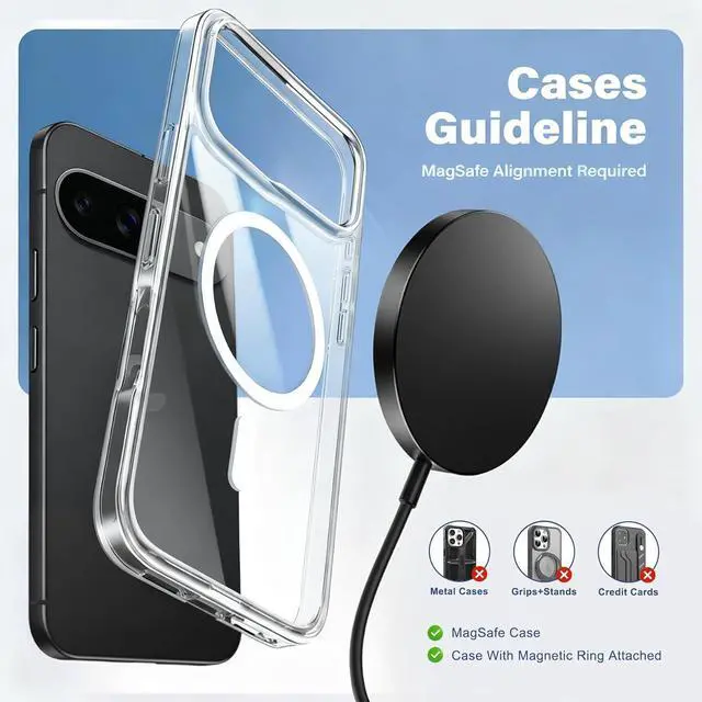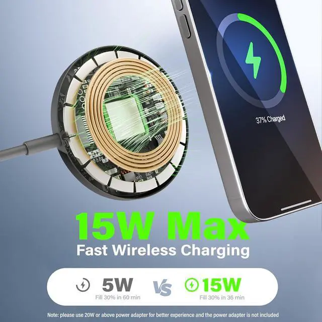 Made for iPhone & AirPods & Pixel & Galaxy: Compatible with the full iPhone 17/16e/16/15/14/13/12/11/X/8 Pro Max Mini Plus lineup and AirPods 4 3 2 Pro with wireless charging cases. Also supports Google Pixel 10 Pixel 10 Pro Pixel 10 Pro XL (Qi 2.2 25W Pixelsnap) Pixel 10 Pro Fold (Qi2 15W Pixelsnap) and Galaxy S25 S25+ S25 Ultra with Qi2 Ready cases for 15W magnetic wireless charging. Auto-align magnetic charging makes every top-up easy and effortless. Powerful Magnetic Lock & Snap-On Charging: Built-in strong-grade magnets ensure a secure hold that wont slip tilt or fall during charging. Ideal for bedsides desks and even mobile gaming. 15W Max
