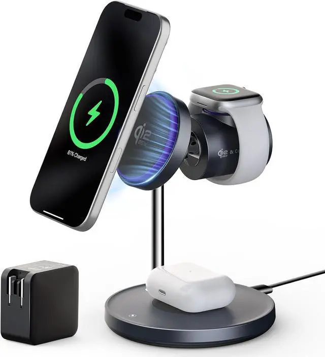Compatibility: Qi 2.2 25W for iPhone 17/16 Series (iOS 26+ required) 20W for iPhone 17 Air. Qi2 15W for 15/14/13/12. (Except SE mini series 16e. ) 2.5W for Watch all models. 5W for AirPods 4 (ANC) /3/2/Pro/Pro 2 and other Qi-enabled earbuds.