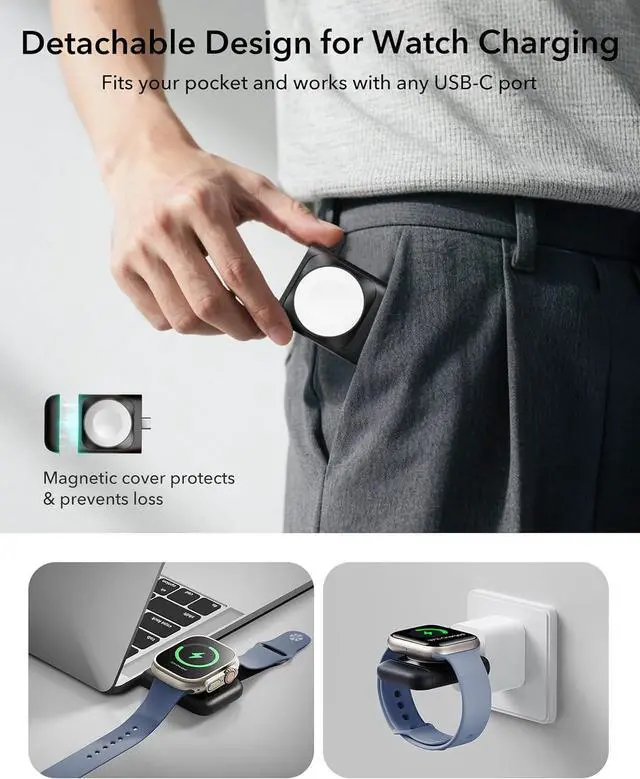 Portable Watch Charger: with 's MFW-certified second-generation watch charger you'll experience faster and more reliable charging; the Watch S10 can reach 50% charge in just 30 minutes; the magnetic watch charging module is detachable and can be used anywhere via USB-C; this future-proof design supports all iOS updatesStrong Magnetic Stand with