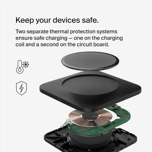 PROTECTION FROM OVERHEATING: This Belkin charging pad is designed with 2 thermal protection systems to control your device's temperature and prevent overheating. Plus Foreign Object Detection (FOD) adds further protection for your pad and devices.