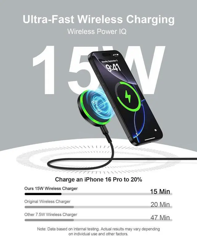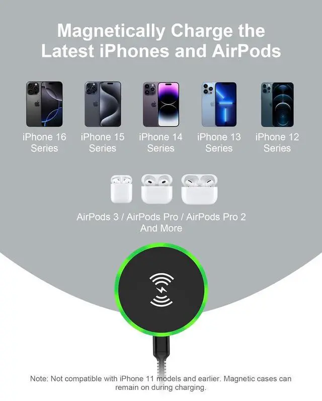 [Note: MagSafe Charging for Android phones like Galaxy & Google Pixel you need the Magnetic case to charge]15W Fast Wireless Charging- Delivers up to 15W high-speed wireless power for iPhone 17/16/15/14/13/12 Galaxy S25/S24/S23 Ultra S22 series Google Pixel 10 Pro XL Pixel 10 Pro Pixel 10 Pixel 10 Pro Fold Pixel 9 Pro XL Pixel 9 Fold Pixel 8/7/6 and more. Also supports Qi-certified standard charging for AirPods 3 AirPods 2 (Wireless Charging Case) and other Qi-enabled devices. Wide Compatibility- 15W
