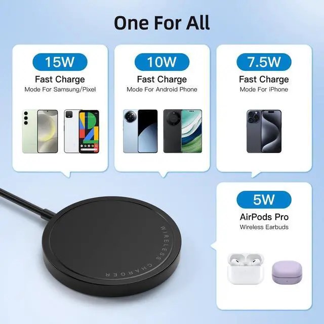 ?? Perfect Wireless Charging SolutionThe Magnetic Wireless Charger offers up to 5W/ 7.5W /10W/15W wireless charger for your iPhone. Our fast charger is especially suitable for iPhone 17 Pro Max/17 Pro/iPhone Air/17/iPhone 16 Pro Max/16 Pro/16 Plus/16/iPhone 15 Pro Max/15 Pro/15 Plus/15/14 Pro Max/14 Pro/14 Plus/14/13 Pro Max/13 Pro/13/13 Mini/12 Pro Max/12 Pro/12 Mini/12 and 2. With this wireless charging solution you can charge your iPhone quickly and efficiently.?? Powerful Magnet and Stable AdsorptionThe strong magnet of the wireless charger ensures that your iPhone is held securely in place while charging. The charger also features automatic alignment ensuring that your iPhone is always charged in the optimal position.