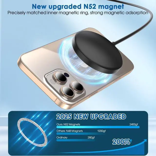 Compatibility: Adopting the latest upgraded magnetic technology it is perfectly compatible with iPhone 16/16e/16 Plus/16 Pro/16 Pro Max/15/15 Pro/15 Plus/15 Pro Max 14/14 Pro/14 Pro Max/13 Pro/13 Pro Max/13 mini/12/12 Pro/12 Pro Max/12 mini AirPods 3/2/Pro and also supports iPhone 8 and above models (requires Mag-Safe protective case)Strong