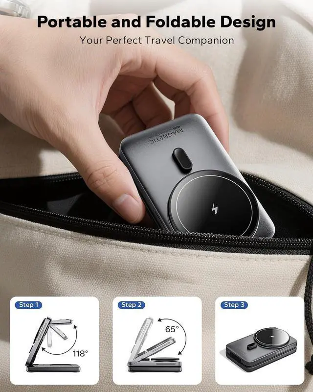 It can be folded 180 degrees into a wireless charging pad easy storage in your bag no extra cords. Light minimalist design is great for fastpacking or travelStrong MagnetThis magnetic 3in1 charger stand features upgraded magnets for stable inductive charging. With N52-strength magnetic adhesion it securely holds your phone. The rubber anti-slip pads on the bottom allow for easy angle adjustments perfect for selfies or watching videos in landscape modeUniversal