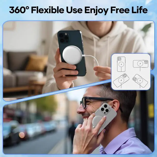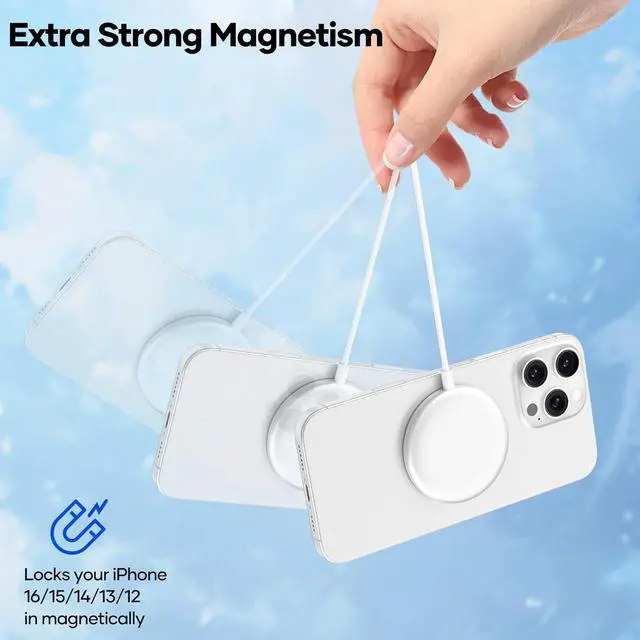 Fast charging suits your busy lifestyle the 4.92 ft ( 1.5 m) extended cable provides a wider charging area. Strong Magnetic Suction Charging This iPhone charging pad features a strong built-in magnet for precise alignment ensuring secure and stable charging even when adjusting the angle no more worries about your phone falling off. Magnetic charging is only compatible with iPhone 12 series and later models. For optimal magnetic charging we recommend using Mag Safe case or a bare phone (if using regular phone case thickness3mm no metal case magnet credit card on the back when charging)??