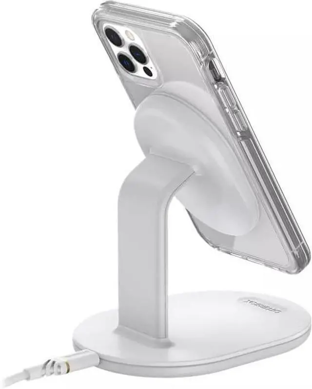 Streamlined design creates ideal iPhone resting place; seamless magnetic alignment and attachment? 15W Qi wireless charger delivers optimal 7.5W charging speeds to your iPhoneSuspends iPhone securely in portrait or landscape while charging streaming and connectingNo-slip weighted base holds stand steady as you attach and remove iPhone with one handTrusted