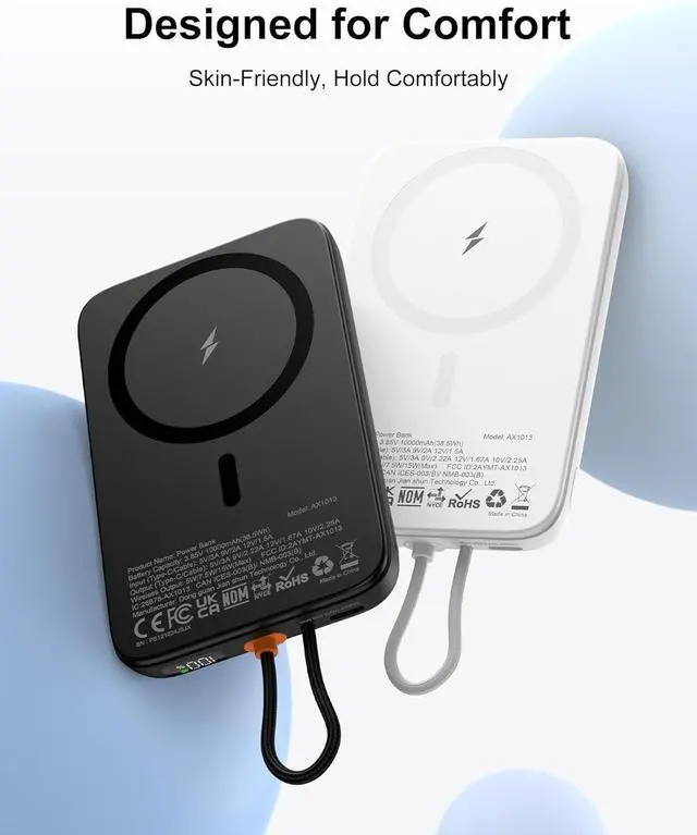 What You Get: 10000mAh Magnetic Power bank x 1 USB-C Charging Cable x 1 User Manual x