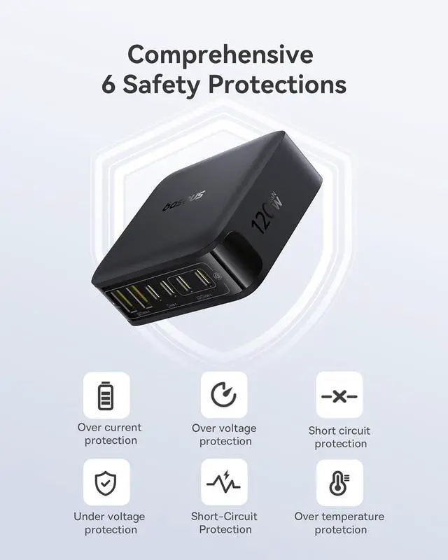 Safe & Reliable GaN Technology: Equipped with AI temperature monitoring (45, 000 times per hour), 90% energy conversion, and an 8800mm² heat dissipation area. Built-in 6 protections ensure peace of mind.
