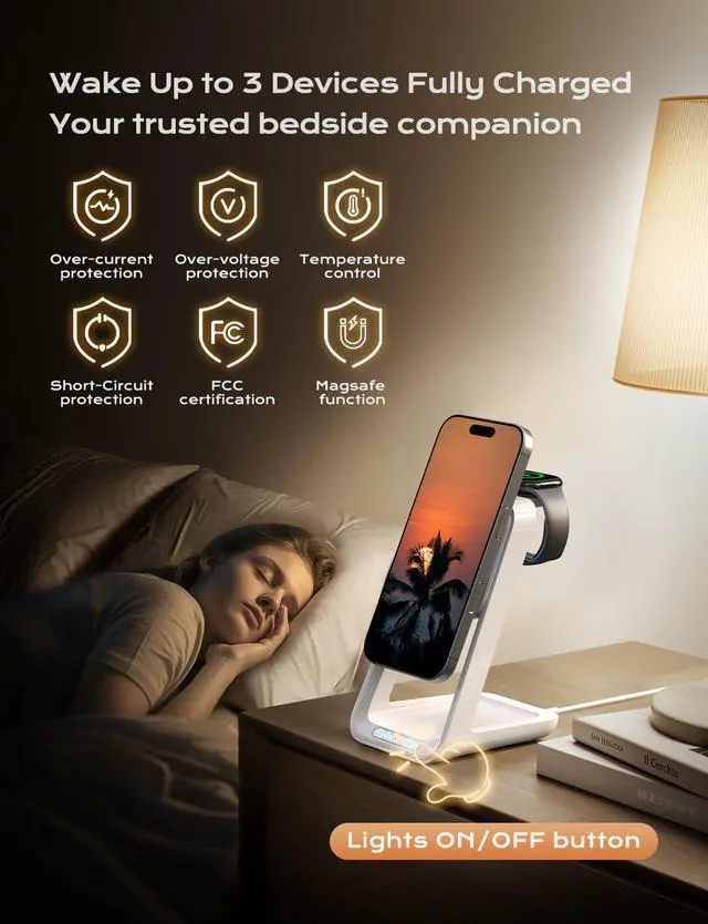 Unique Fast Charging Experience Equipped with a magnetic iPhone charger delivering up to 15W ( 7.5W for iPhone), plus 5W for earbuds and 3W for watch, this station fully powers your devices in about 3.2 hours. It automatically switches to trickle mode once charged, protecting battery health while ensuring safe, efficient, and reliable charging every time.