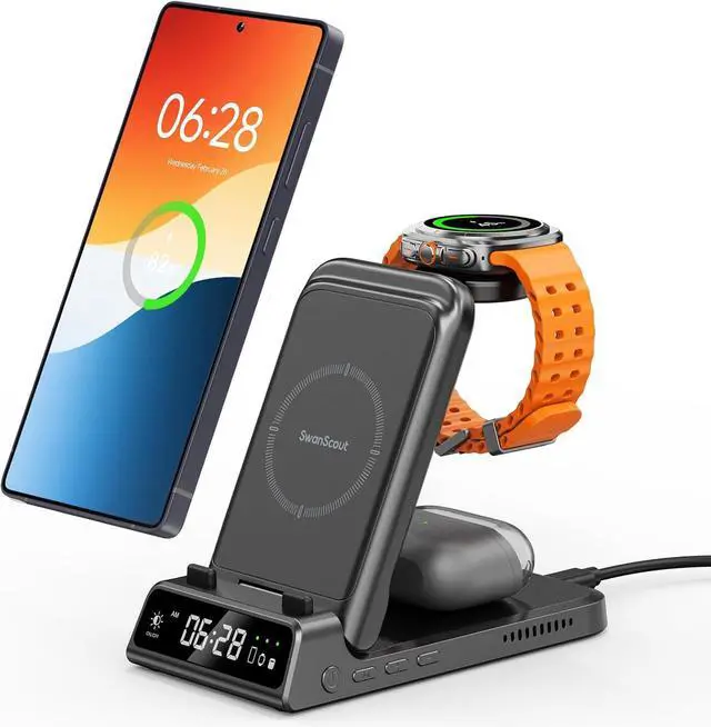 Charge All at Once - Simply place your galaxy watch, phone, and earbuds on the charger to power up simultaneously. A single cable and charging brick (not included) keep your setup cleanno more clutter from multiple cords. Simplify your life with a cleaner, more efficient way to charge