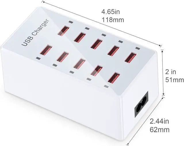 Ultra Powerful USB Wall Charger10 ports pump out 60 W, enabling simultaneous multi-device charging. High quality and reliable portable charging solution thats trusted by consumers around the globe