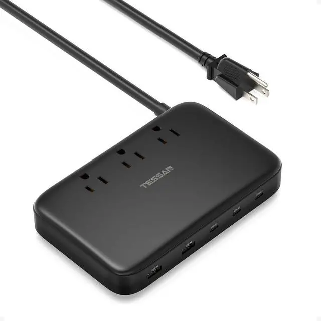 [8 in 1 Charging Station for Multiple Devices] - Power up to 8 devices simultaneously with 3 AC outlets (1875W Max) + 5 USB ports (3 USB-C + 2 USB-A). The slim profile for this usb charger block multiple ports allows it to be stowed behind furniture or in a suitcase, perfect for hotels or dorm rooms.