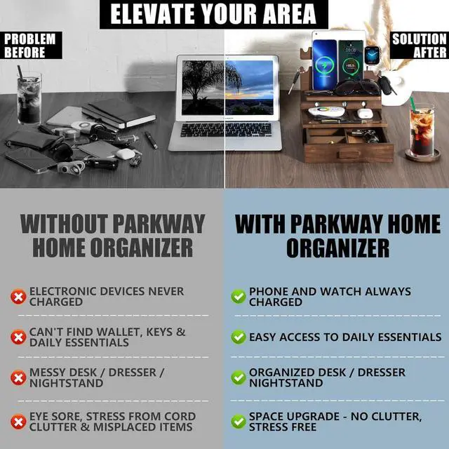 AND YOUR LIFE: Tired of tangled wires? Had it with clutter and chaos? Check out this phone docking station for men and women; It keeps your phones and tablets charging, your cables neatly organized, and your everyday must-haves right there at your fingertips; So you can grab what you need when you need it