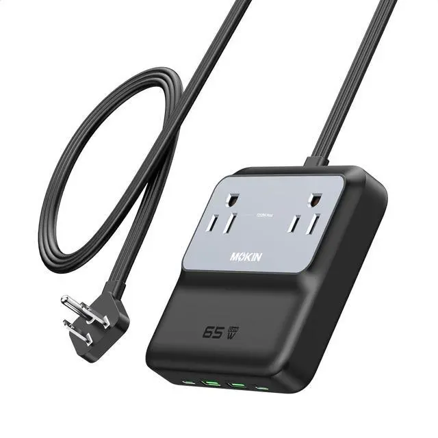 Charging Station: Equipped with 2 USB-C ports, 2 USB-A ports, and 2 AC outlets, can power up to 6 devices simultaneously. This charging station is a perfect combination of usb charger and power strip, ideal for the home, office, and travel