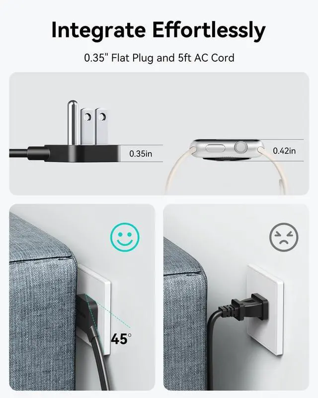Compact and Portable: Weighing only 14.07 ounces, this USB C fast charging station features an ultra-compact and lightweight design that make it easy to carry in your bag or backpack, the durable ABS shell prevents scratches and has flat plug