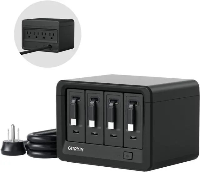 All-in-One Charging Solution: Revolutionize your workspace with 4 retractable 40W type-c wall chargers in one sleek hub. Power laptops, phones, tablets, smartwatches, and more simultaneouslyeliminate outlet shortages and tangled cables while maximizing charging efficiency.