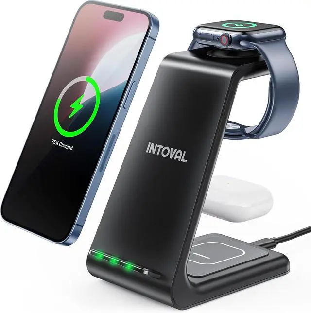 Upgraded 3-in-1 Apple Wireless ChargerPower your iPhone, Apple Watch, and AirPods all in one sleek station. With 5 years of refinement, it delivers safe, steady charging every nightpreventing overheating, overcurrent, and overvoltage for lasting peace of mind. (Note: Supports only AirPods with wireless charging cases. iPhone 12/13 mini not compatible. )
