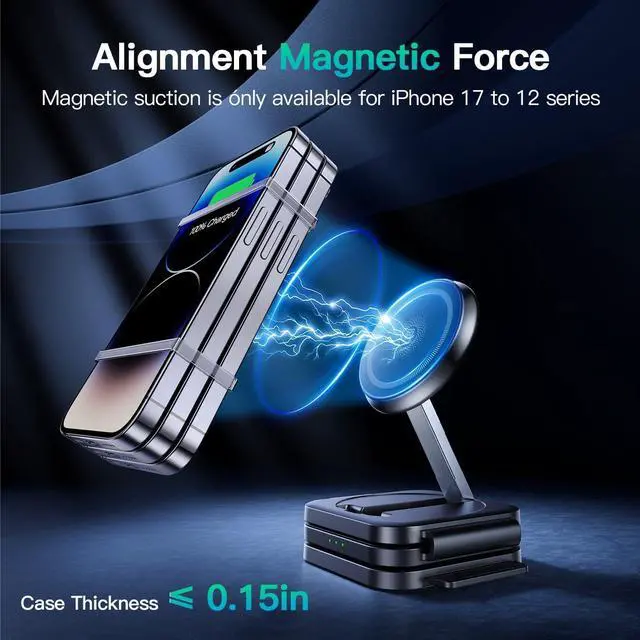 [Strong Magnetic Alighment] The strong magnetic force ensures perfect alignment every time for efficient charging of your multiple Apple devices. The secure Magsafe hold keeps Apple devices frmly in place, making it ideal for travel, bedside, or desk use. This multi-device wireless charger eliminates the guesswork and frustration of improper placement that prevails other charging stations.