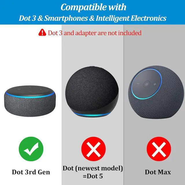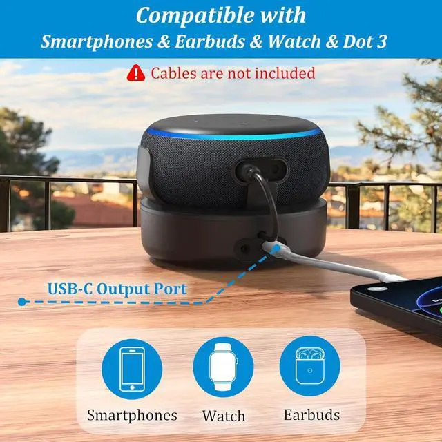 COMPATIBILITY: The battery base is compatible with Dot 3rd Generation and other USB-C powered devices, such as for 1Phone 14/15/16/17 Series. It is equipped with a USB-C port in the back. Please use the Dot original adapter for input port. Not for Dot 4th Gen or Dot 5th Gen. (Only a battery base, do NOT include the device, adapter or cables)