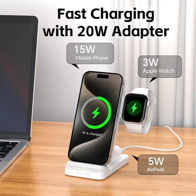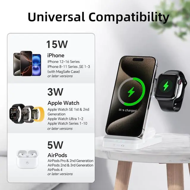 Highly Compatible: Perfect 3 in 1 charging dock for Apple, Compatible with iPhone 17 Pro Max / iPhone 17 Pro / iPhone 17 / iPhone Air / iPhone 16 Pro / iPhone 16 Plus / iPhone 16 /15/15 Plus/15Pro/15 Pro max/14/14 Plus/14Pro/14 Pro max/13/13Pro/13Pro Max/13 mini/12/12Pro/12Pro Max/12 mini/11/11Pro/11Pro Max/XS/XR/XS MAX/X/8/ 8Plus & Apple iWatch 11/10/9/8/7/6/5/4/3/2/1/SE/Ultra 1/2 & AirPods 1/2/3/Pro.