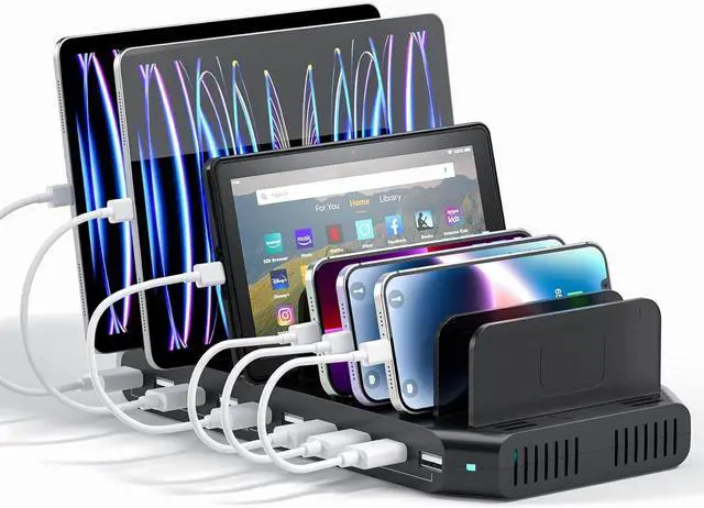 Adjustable Dividers - Adjust width easily to any size you need, hold iPad or Phone even it with the shell. We provide 15Pcs dividers for your need, 10Pcs tall, 5Pcs short which totally fix you' re needed, even more, help clear up the desktop and organize all digital devices while charging.