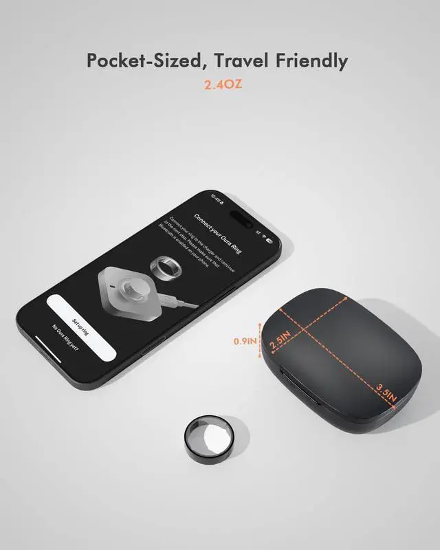 Travel-Ready Charging Hub: Compact, lightweight design ( 2.5 x 3.5 ) slips into pockets or bags. Charge your ring on the goperfect for gym sessions, business trips, or daily commutes.