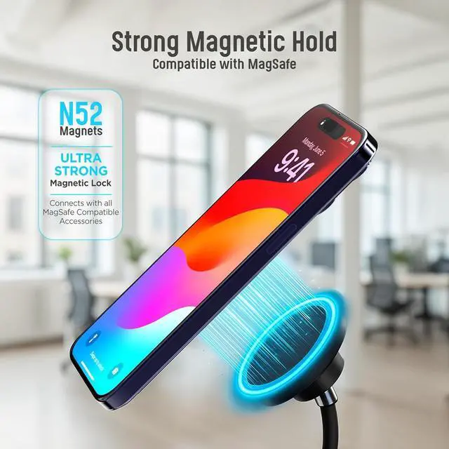 Secure Magnetic Hold: The stand features ultra-strong N52 magnets for a secure hold, preventing slippage. Compatible with MagSafe-enabled phones and cases for effortless attachment.