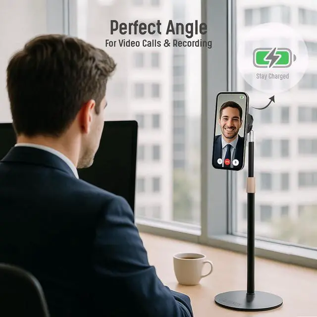 Mount and charge your phone simultaneously with this adjustable magnetic desktop stand - perfect for video calls, recording, streaming, and keeping your phone within easy reach.