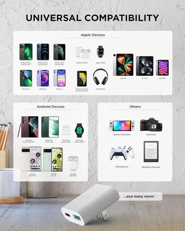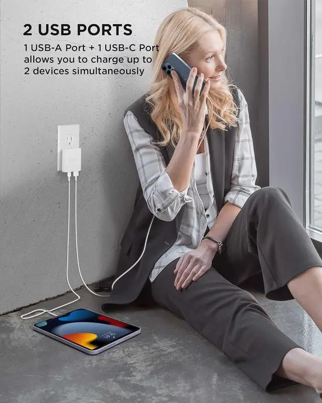 Dual USB Charger: iHome' s phone wall charger block is a usb adapter plug with (1) USB-C Port and (1) USB-A port that converts a single AC outlet into a multiple usb charger, allowing you to charge up to 2 devices at the same time!