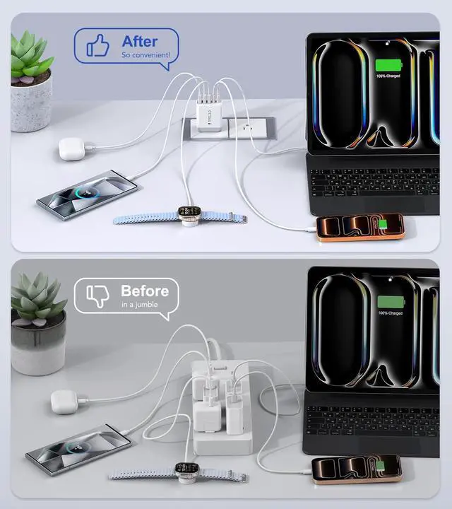 Universal Compatibility USB C Wall Plug: This type c charging block compatible with All smartphones and tablets, such as iPhone 17/17 Pro/17 Pro Max/16/16 Pro/16 Pro Max/16 Plus/15/15 Pro/15 Plus/15 Pro Max/14/14 Pro/14 Pro Max/14 Plus/13/13 Pro/13 Pro Max/13 Mini/12/12 Pro/12 Pro Max/12 Mini/11/11 Pro/11 Pro Max/XS/XS Max/XR/X, usb c charger for iPad Pro/Air/Mini, Apple Watch10, AirPods4, usb a charger compatible for Samsung Galaxy Ultra2/S25/S25+/S25 Ultra/S24/S23/S22/S21/S20/S10/S9/S7/A12/A13/A22/A32/A52/A53/Note 20, LG, Google Pixel, Kindle, Wireless charger, Tablets, Switch, etc
