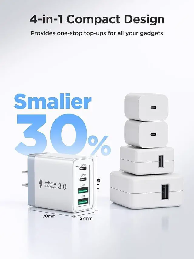 Fast Charging Block: Upgraded USB C Charger Block supports the Power Delivery and Quick Charge 3.0 fast charging functions with a total power of up to 40W. And when you connect 4 devices, power will be distributed efficiently between ports to ensure you get the best charge to minimize waiting time. The best replacement for your original usb charger
