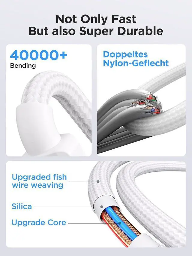 Safety Protection: The c type charger block fast charge with strong and fire protection ABS+PC shell, and built-in multiple protections, avoiding overcharging, over-heat, over-voltage, over-current, short circuit issues, maximizing the battery life. The smart chip in the cable match the current required by the device automatically, ensuring safer and more stable charging