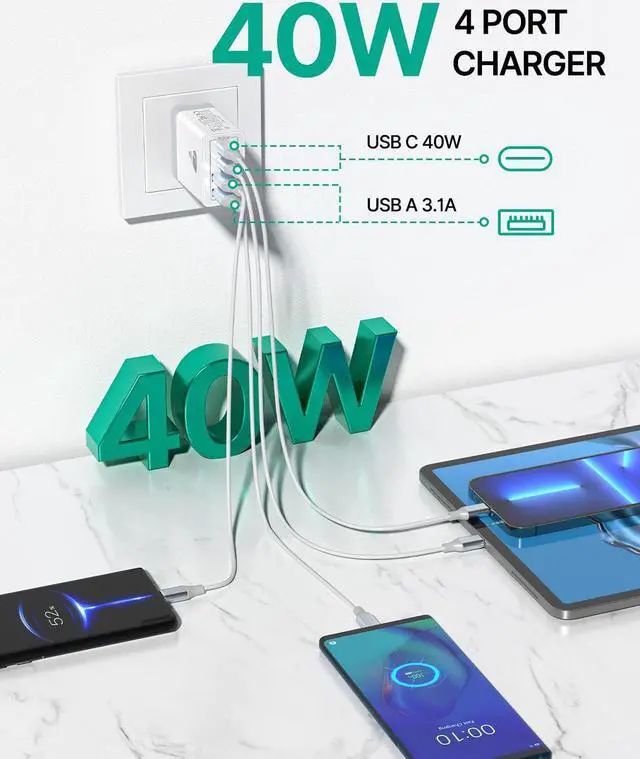 Compact and Portable: It takes up no space and is comfortable to carry. Aiminu 40W 4-Port USB C Wall Charger White + Black (cable not included) with 18 Months Worry-free Replacement and 24/7 Online Customer Service. If you have any questions, please feel free to contact us