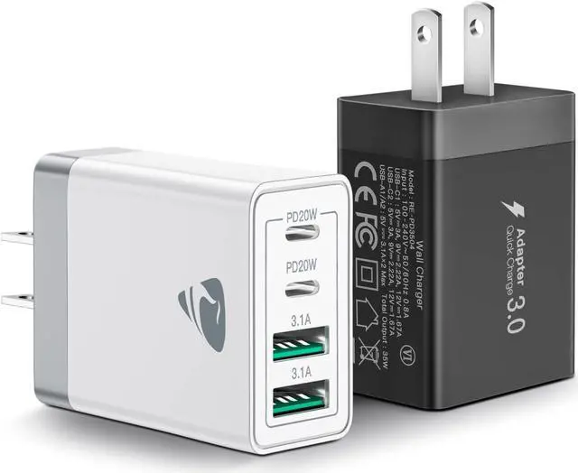 2-Pack Fast Charging Block: Aiminu 4-port charger block is designed with Dual USB-C ports and Dual USB-A ports that can charge up to 4 devices simultaneously. You can charge your phone, tablet, and headphones at the same time, saving you waiting time