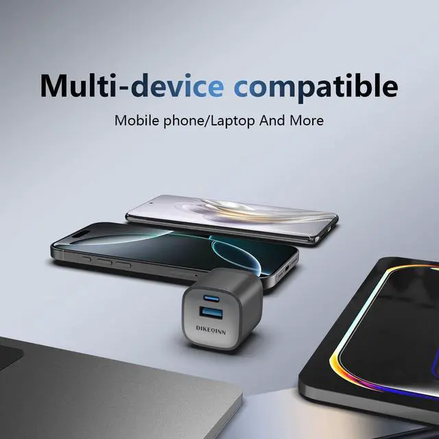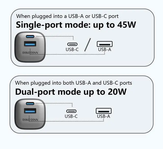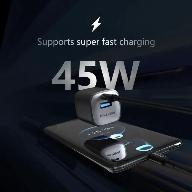 [Compact GaN Tech & Space-Saving Design] DIKEQINN 45W GaN Mini Charger (40% Smaller) 40% more compact than standard 45W USB-C chargers, egg-sized ( 1.52 × 1.4 × 1.4 in) to fit effortlessly in pockets/travel bags. GaN (Gallium Nitride) technology delivers full power in a tiny footprint, freeing up outlet space for offices, airports, or crowded power strips.