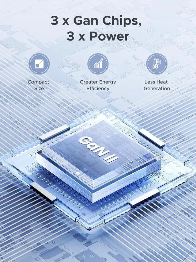Real safety is safe inside and out: The charger features an upgraded GaN II chip, offering efficient heat dissipation and faster response to over-voltage, over-current, and short-circuit protection. Its casing is made of flame-retardant matte PC material, ensuring complete safety both inside and out for this compact charger.