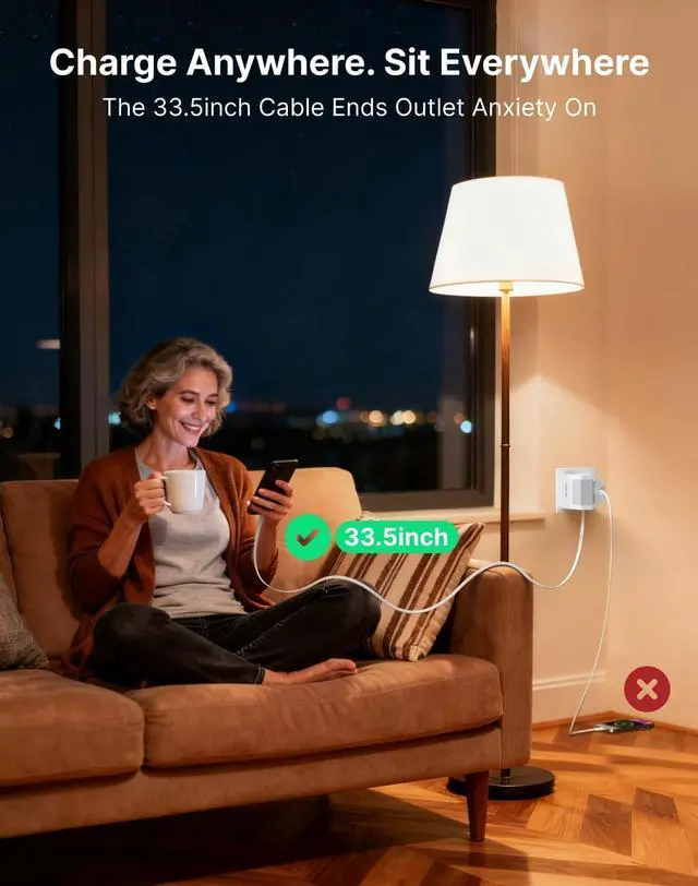 Retractable Type-C Cable: The wall charger features a built-in retractable Type-C charging cable that extends to a length of 31.5 inches and adjusts in 10 levels to meet different length requirements. Its built-in retractable mechanism allows the cable to retract freely in one second, ensuring a tidy space at home, in the office, or while traveling.