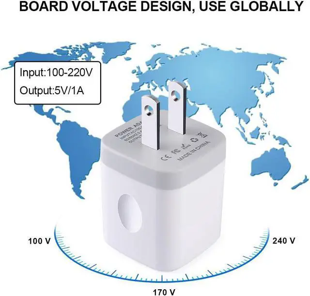 Perfect for travel: The 100-220Voltage board voltage of this Wall Charger Adapter fits US and global electrical standards perfectly. Its compact, portable, and single USB port design makes it ideal for home, business, office, and worldwide travel. Plus, with 10 Pack Package, it' s perfect for big families or for spare use.