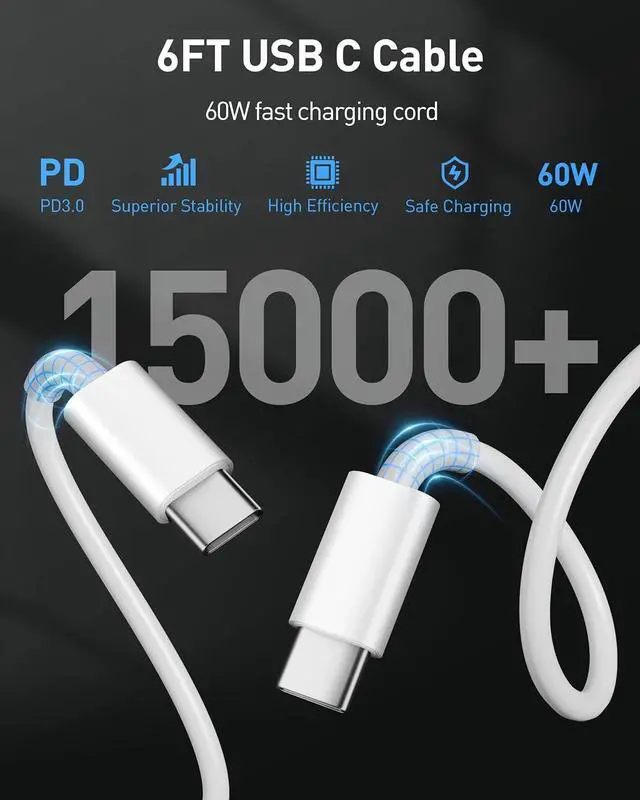 6FT iPad Type C Fast Charger Cord: The 6 foot USB-C to USB C charging cable enables you to charge for your iPad Pro device worry-free on the sofa, in the bedroom, in the office or on the go. Supports PD 3.0 fast charging up to 60W (3A/20V) and data sync transfer speed of 480Mbps