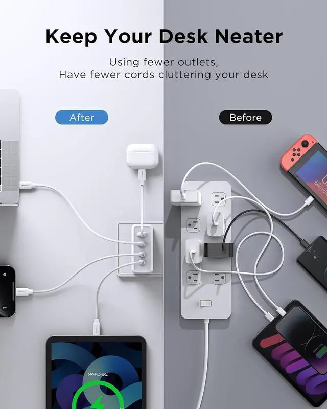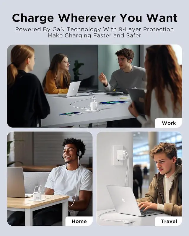 USB Charger]: PISEN 120W USB-C charger with two USB-C ports and two USB-A port supports a total power of up to 120W. Single USB-C port connect a device to charge at up to 100W. Allows users to charge phone, tablet and headset simultaneously to minimize waiting time. It is also a great space saver instead of taking up 4-socket outlets.