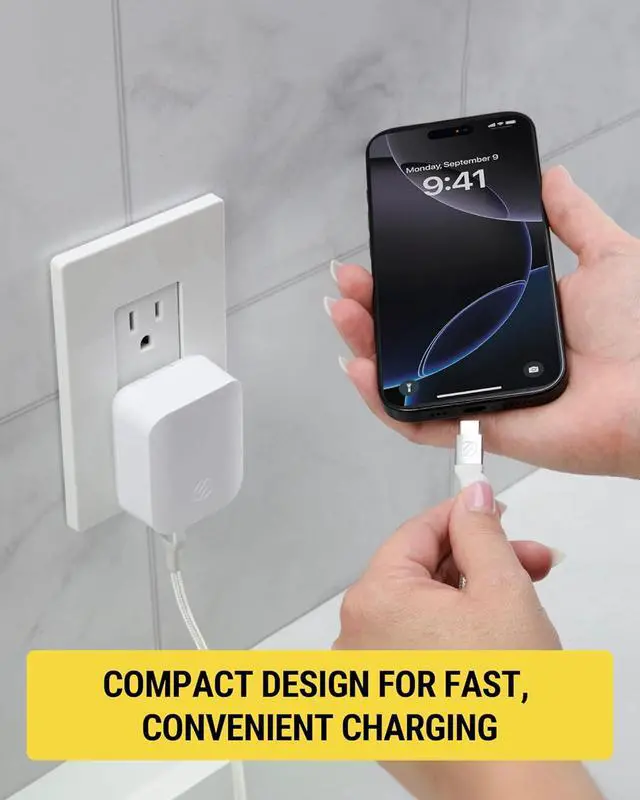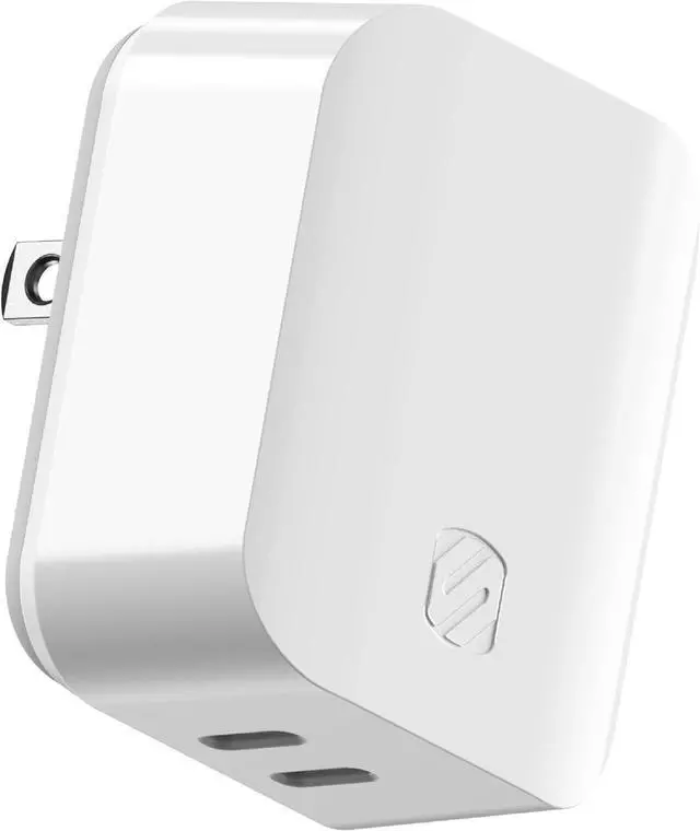 Watt Dual Port Charger: Experience lightning-fast charging with the Scosche 65W USB C charger, equipped with Power Sharing technology. Enjoy charging speeds up to 4 times faster than conventional 5W USB cell phone wall chargers. This sleek USB C wall charger plug block charges compatible smartphones up to 50% in as little as 30 minutes.