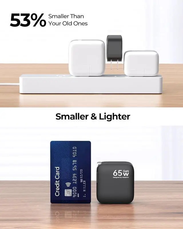 Built-in GaN Chip: Munbyn 65w charger powered with GaN tech, delivers faster, more powerful charging with fantastic efficiency and less heat generation in a compact design, ensures safe, and reliable charging
