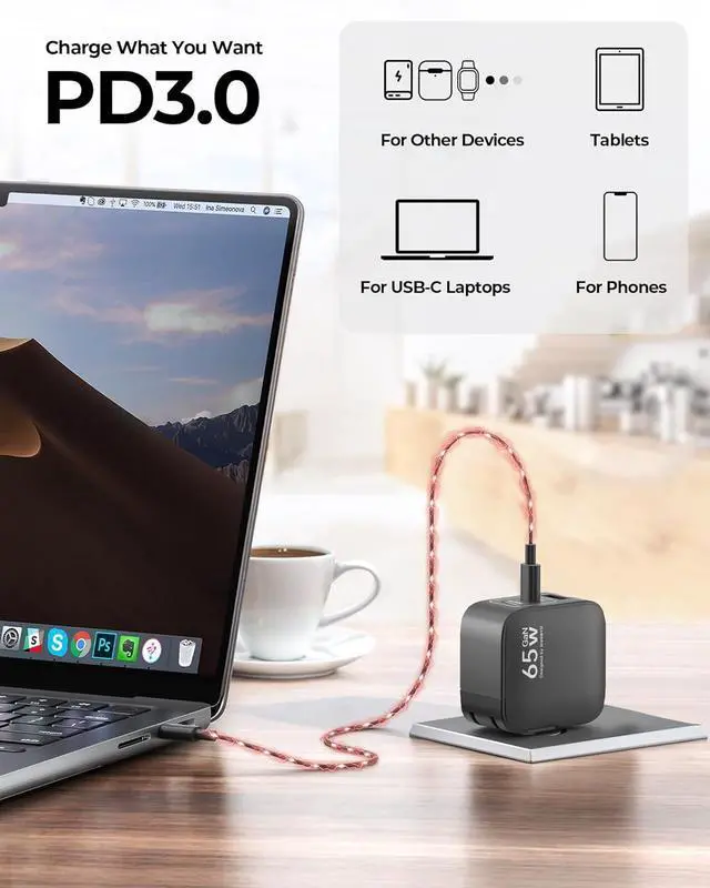 Wide Compatibility: The package includes 65w charger, a USB C-C charging cable and manual. With PD 3.0, MUNBYN 65W USB C Charger can charge over 1000+ popular devices, including Phone 17 Pro Max/ 16 Pro Max/16 Pro/15, MacBook Pro/Air, iPad, Galaxy S24 and more