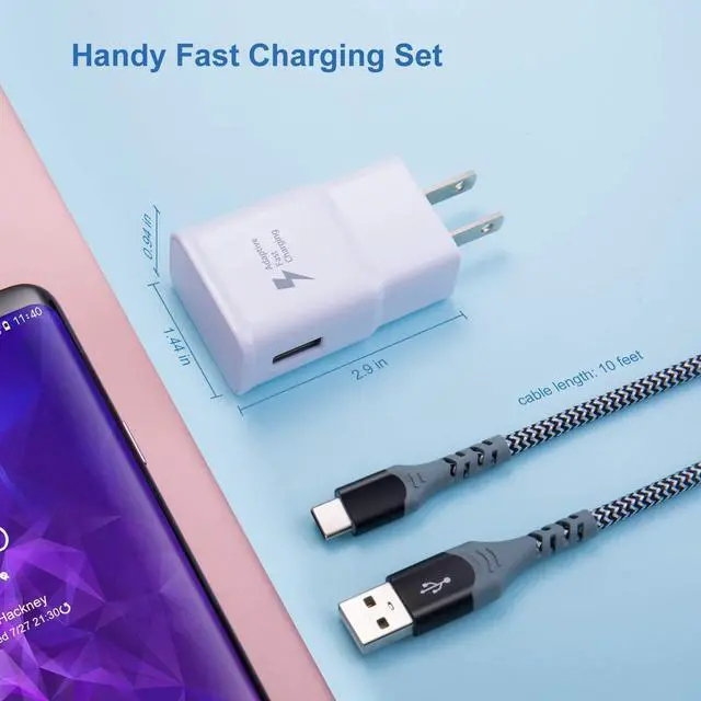 Handy Fast Charging Set: Your purchase includes 2 x adaptive fast charging wall charger, 2 x 10ft usb typc c cable.