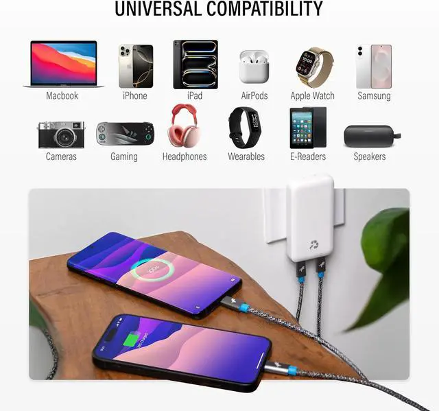 Wide Compatibililty: This flat usb c wall plug is compatible with iPhone 17/16/15/14/13/Pro/Pro Max/Plus/mini, iPad Air/Pro/mini, MacBook Air, Galaxy S24/S23/S22/S21/S20, Pixel 8/7/6/5/4, iWatch Series, and Chrome Book series, Android tablets, etc.