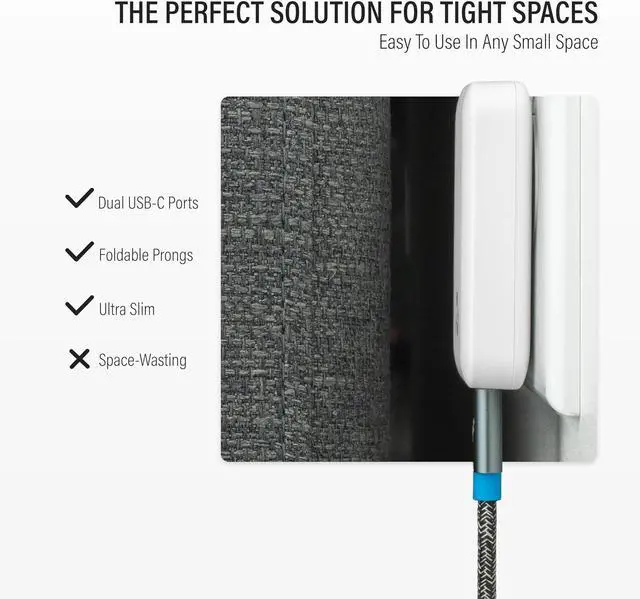 Foldable Travel Charger: Designed with a slim profile and foldable prongs, this compact usb c wall charger easily fits behind home furniture like sofas, beds, or nightstands and into tight spaces. It is convenient and portable no matter where you go.