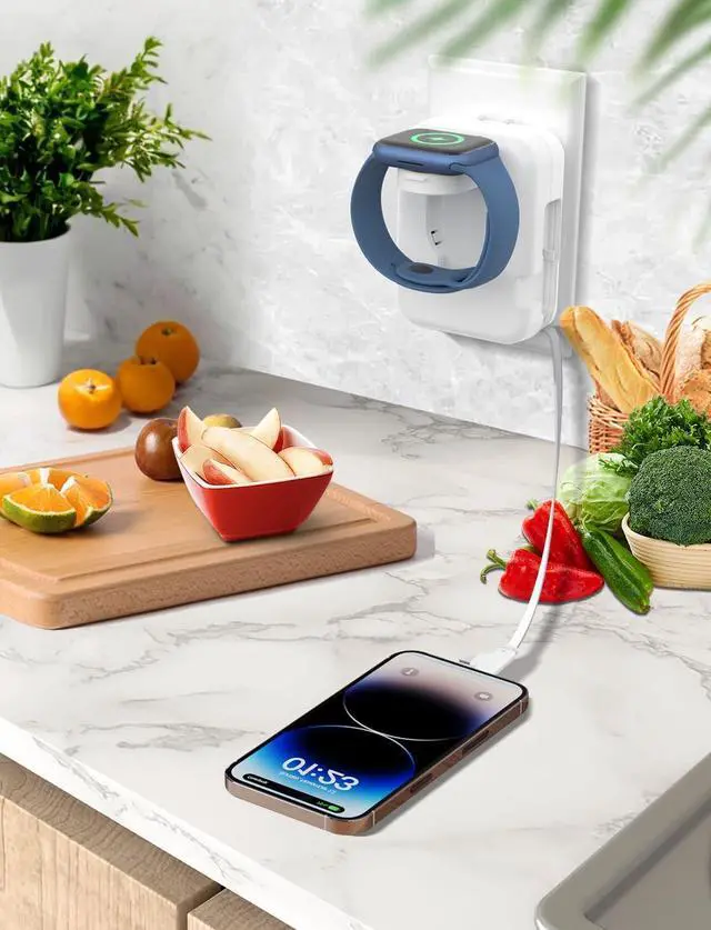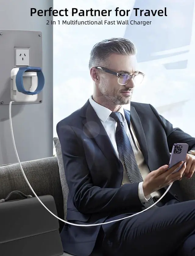 3-in-1 Accessory: Combining three essential functions into one compact device, this accessory features a wall charger with a 31.5 -inch retractable charging cable and a built-in iWatch charger. This all-in-one solution serves as a dual-port power adapter, an i-Phone charger, and an A pple Watch charger, simplifying your charging setup.