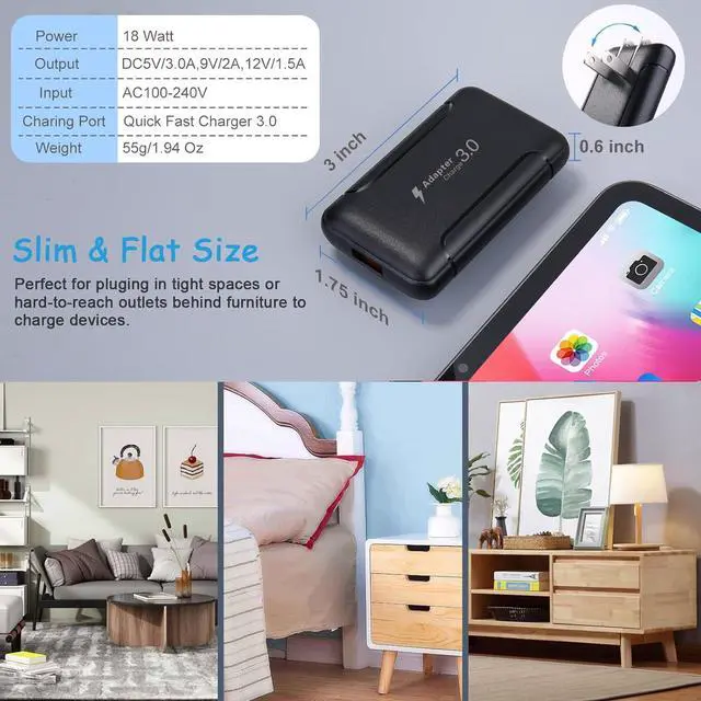 What You Get: 3 Pack fast charge 3.0 Slim Flat USB Wall Chargers, NO-RISK purchase and warm support from Costyle. Please believe that Costyle will respond to the needs of you.