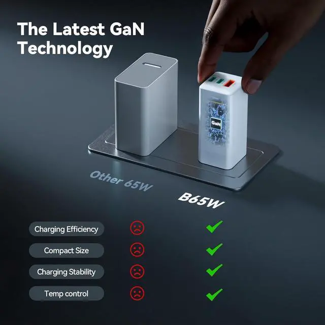 The latest GaN TechGaN technology allows for more powerful components and produces less heat than traditional chargers, which is why this charging block can deliver high-wattage charging in such a compact design.