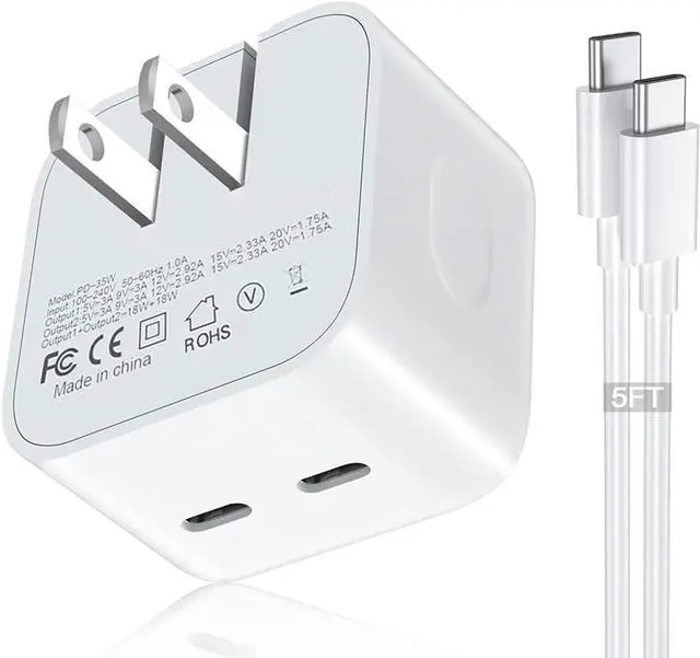 5Ft USB C to USB C Cord: The 35W Dual USB C Port with 5FT cable compact power adapter allows you to charge two devices at the same time, whether you' re at home, in the office, or on the go